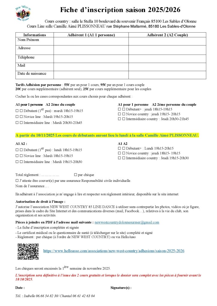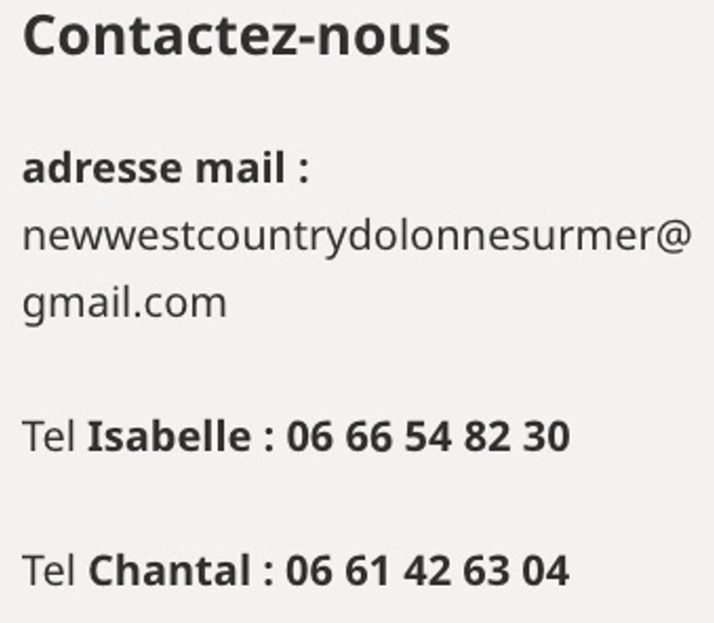 adresse mail : newwestcountrydolonnesurmer@ gmail.com