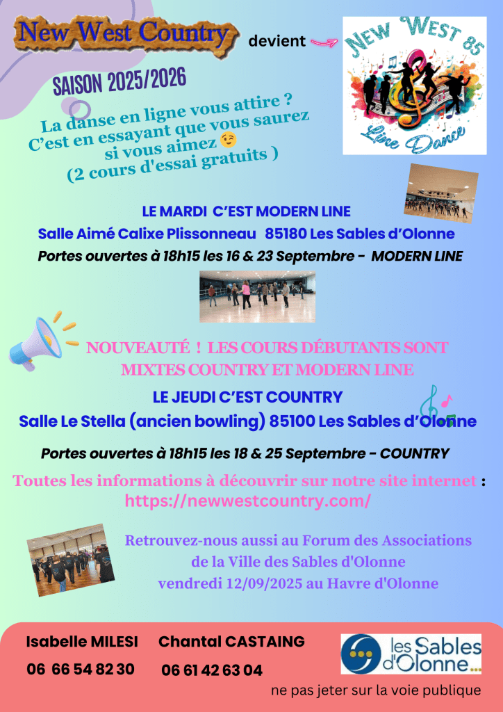New west country évolue au gré de vos retours et de ses activités : 6 cours par semaine sont dispensés sur des musiques dites country, pop, rock, funky, celtiques, etc….et visiblement cela plaît
