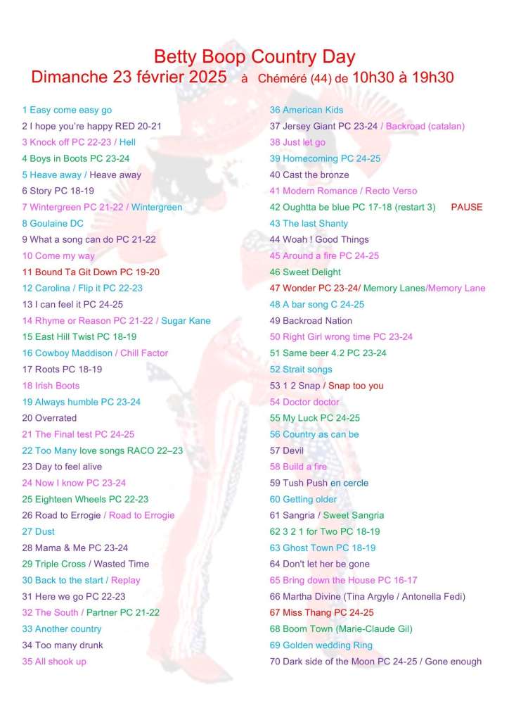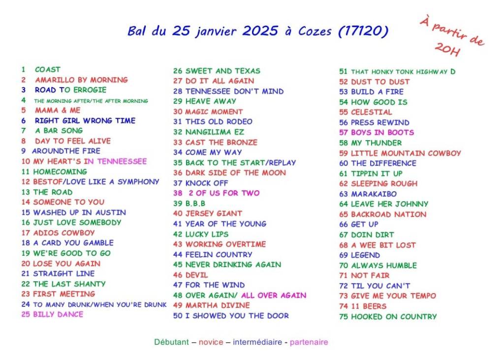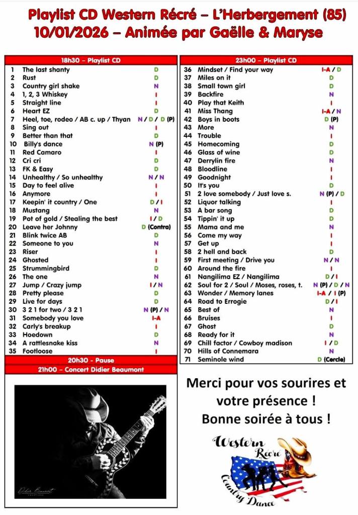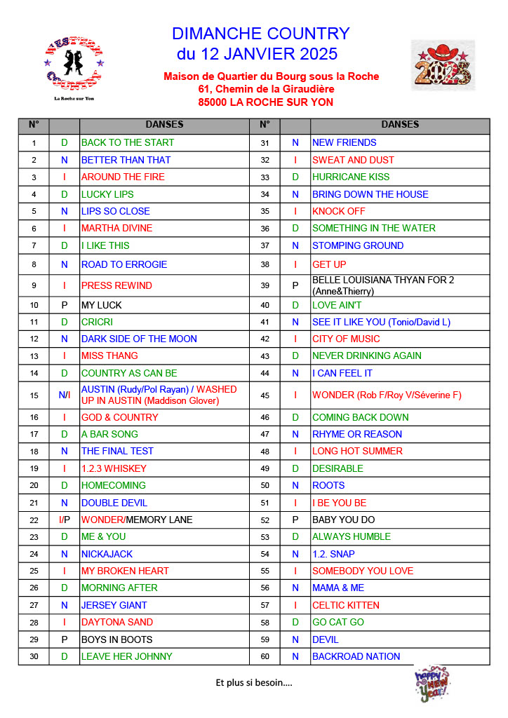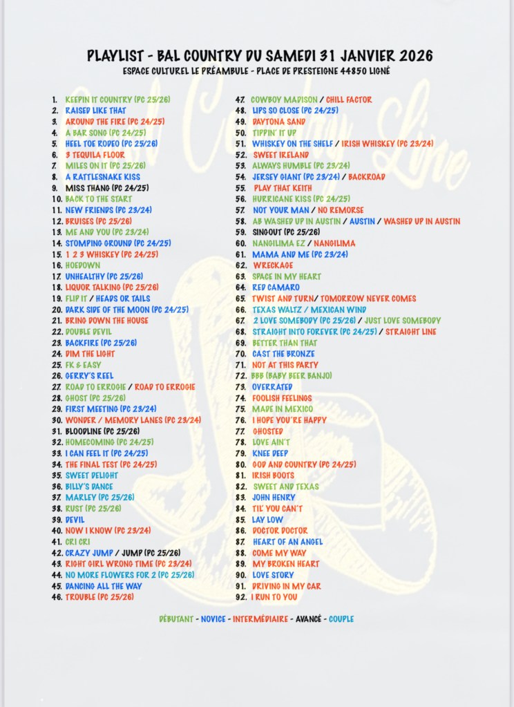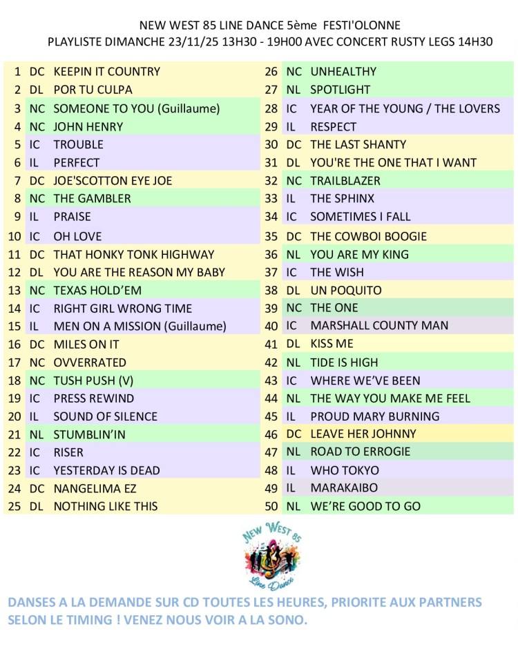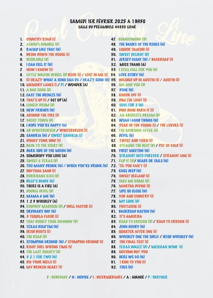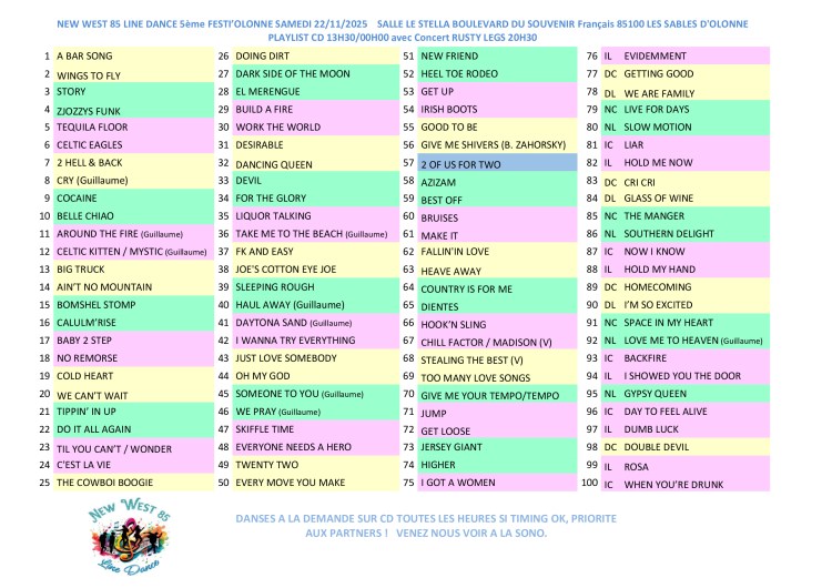 New west country évolue au gré de vos retours et de ses activités : 6 cours par semaine sont dispensés sur des musiques dites country, pop, rock, funky, celtiques, etc….et visiblement cela plaît