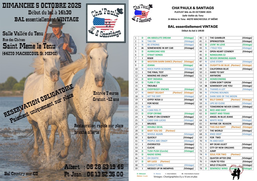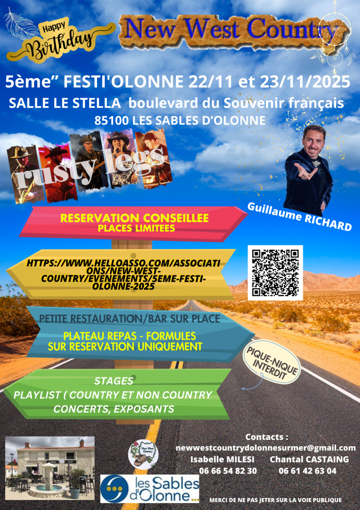 Nous vous invitons vivement à réserver (lien helloasso ou fiche de réservation diffusés courant avril 2025), car les places seront limitées, même si l’endroit est très grand, votre confort pour danser reste notre priorité. Nous comptons sur vous pour faire du Festi’Olonne 5 un super week-end. Restez en alerte sur les infos à venir
