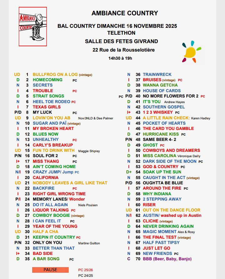 Nous serons en dernière position. Pendant le défilé nous danserons à 2 reprises. Le défilé se terminera à l’aire des vallées avec une petite démo et initiation faite par Isabelle (Zabou)